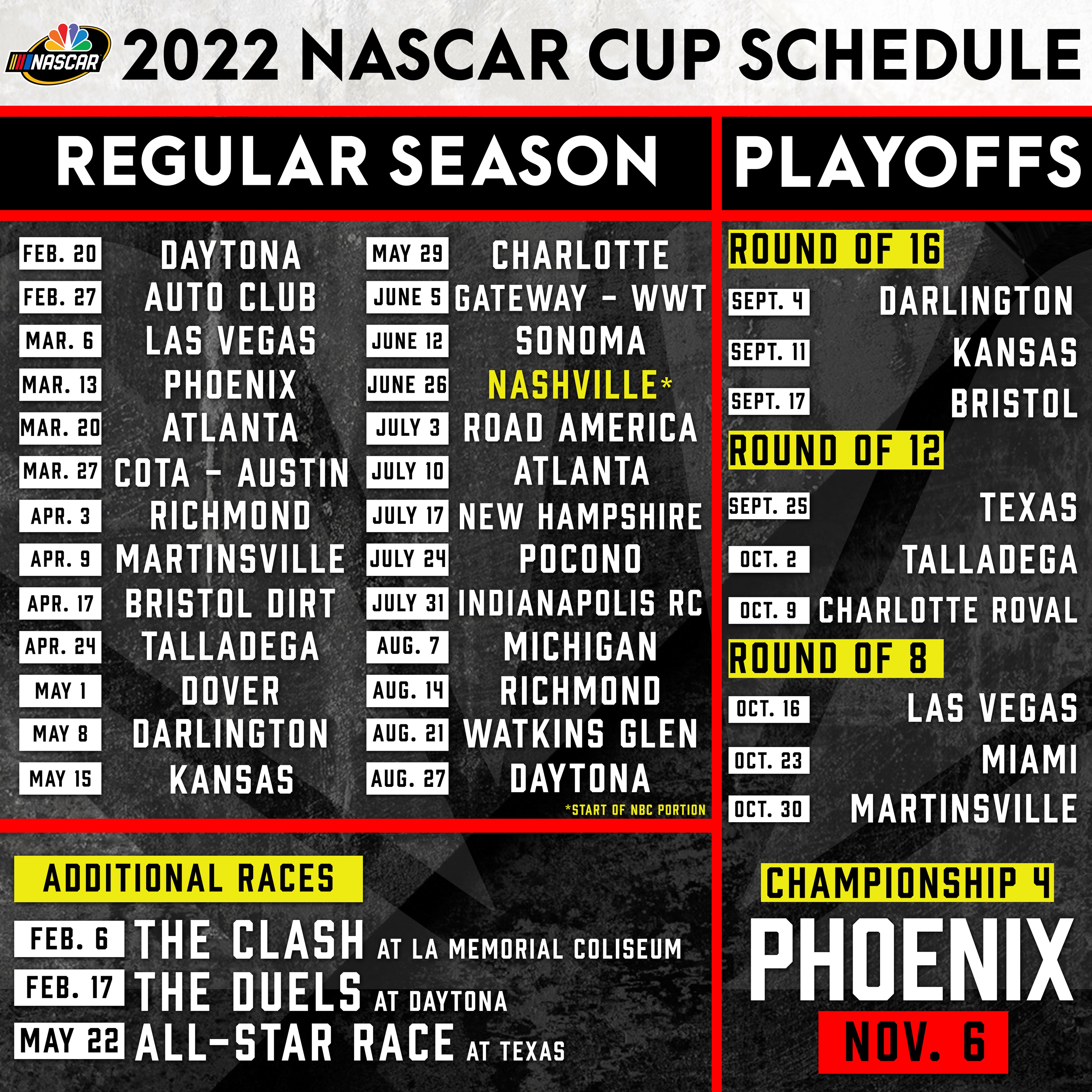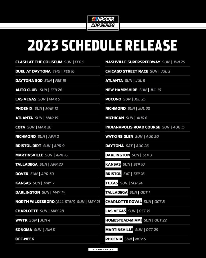 Azt én nem is néztem, csak hogy NASCAR schedule. 😀 Aztán a tegnap esti emlékeim alapján írtam a hsz-t.na de ez az idei, nem?Nincs érdemi változás az egyetlen Road America - Chicago cserén kívül, pedig jó lett volna.