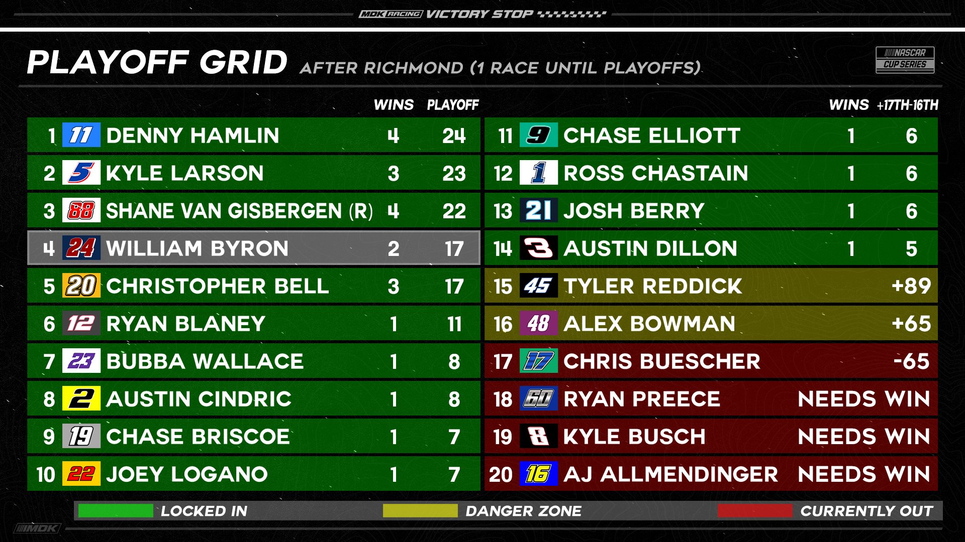 Hocevar helyett Blaney lett Austin Dillon legnagyobb kihívója a győzelemért. Bowman és Boucher szerintem a 2023-as bajnoknak szurkol.