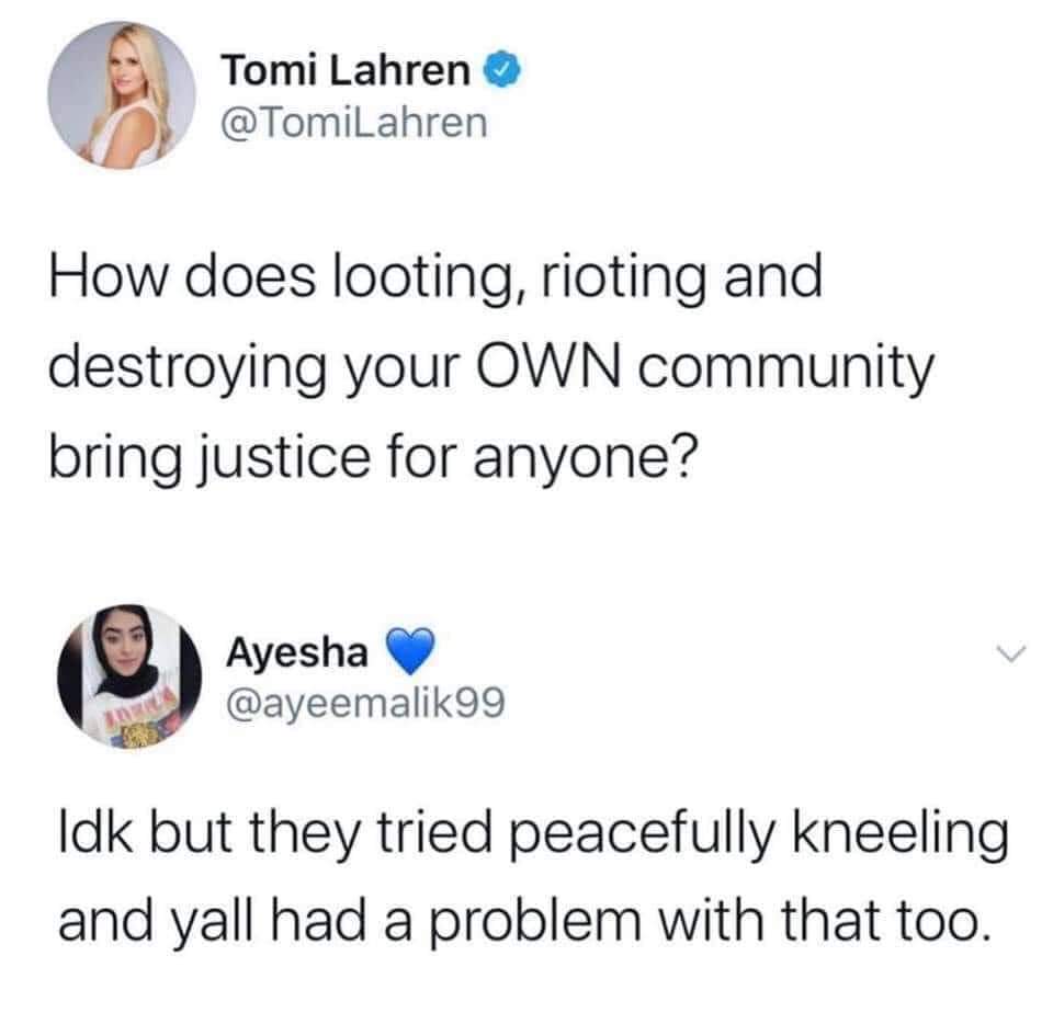 SajnosMondjuk MLK úgyis tudott eredményeket elérni, hogy nem térdelt le a himnusz alatt és fosztogatásra sem uszította a követőit.Lehet az ma már nem menő