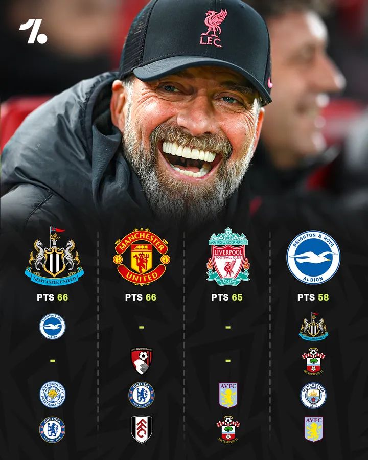 Kemény, hogy a BL helyeket végül mégis lehet, hogy a Chelsea dönti majd el. De a csütörtöki Newcastle - Brighton meccsen kezdődik majd minden el. (Csütörtökön EL visszavágók ide/oda a legjobb meccs lesz).hát végülis a Répaliga még hiányzik Klopp gyűjteményéből...