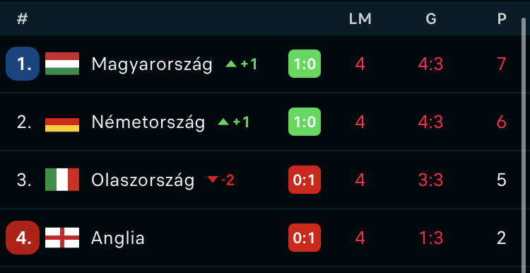 persze rendelkezik 3 garnitúra játékossal, de ezek nem összeszokott csapatok és ez baromira látszik a játékukon.Azért azt az egy tényt tán még ti sem vitathatjátok, hogy az olasz, német, angol csapat rendelkezik legalább 3 garnitúra válogatottal, aki különb mint a mi csapatunk. Itt azért az angoloknal is van pár srác, akinek a vb helye nem biztos, ők biztosan nem veszik félvállról.hát...aki annak tart...annak adsz a véleményére? csak észrevette már mindenki, hogy nincs barátságos meccs, hanem ez van helyette..De ha ennek hangot merek adni akkor hazaáruló mocsok vagyok....Azt nem értem,hogy VB selejtezőkön miért nem tudtunk így játszani végig...mert ott rendes csapatok ellen játszunk, akik nem kísérleteznek...