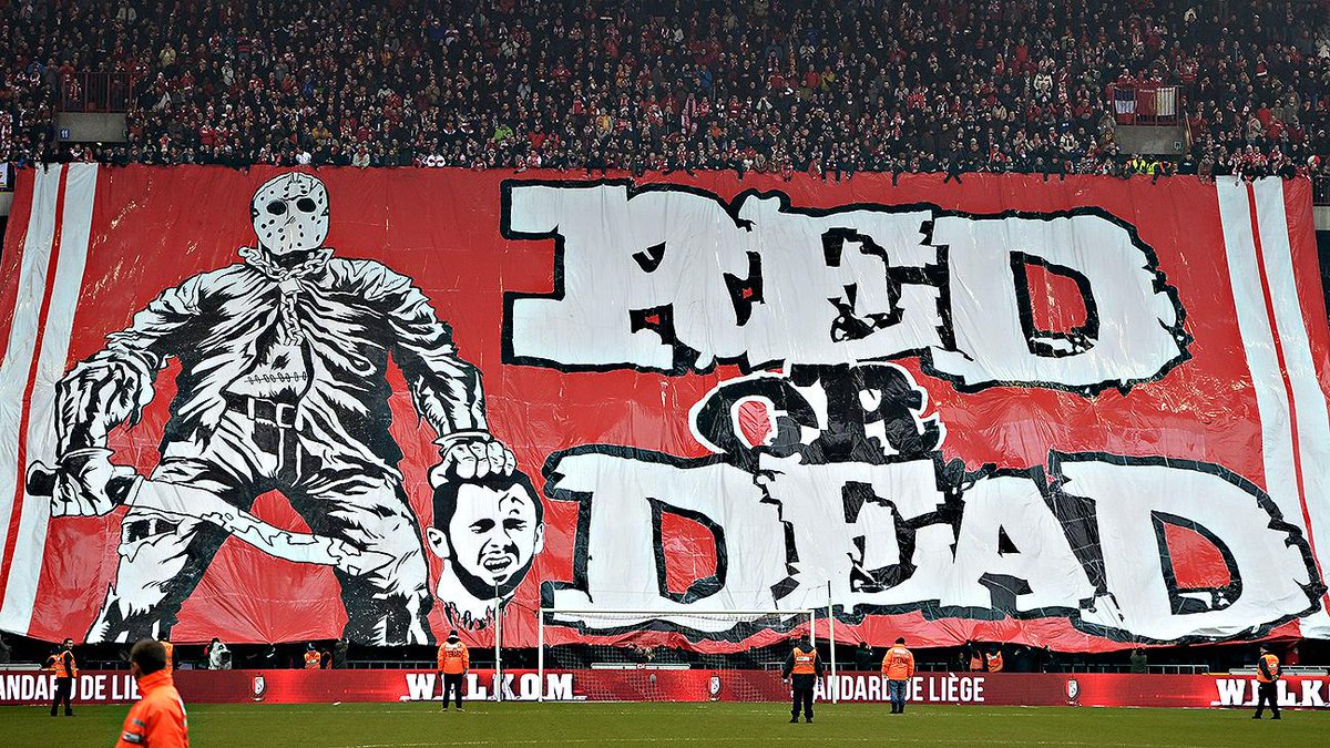 Standard Liège szurkolói így fogadták az Anderlechtben szereplő volt játékosukat, Defour-t:mondjuk van, ami túlmegy a jó ízlés határain, de hát ha a bíró nem szedeti le a drapériát, akkor lelke rajta.