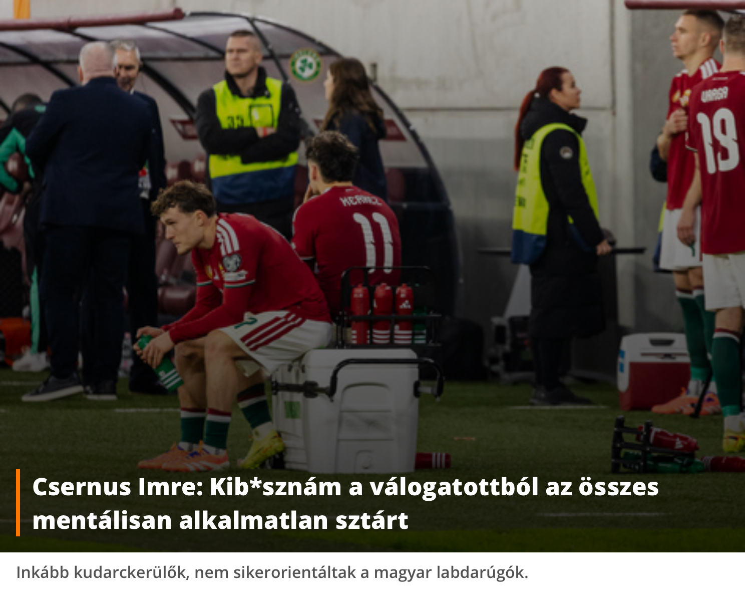 Akik sikerorientáltak.Csernus összefoglalta az elmúlt oldalak szófosását röviden, plasztikusan:kibaszná és ki játszana helyettük? úgy általában a magyar sportolókra jellemző ez a mental makeup, és ebben benne van az is, hogy Magyarországon szocializálódtak. kb. ahhoz hogy egy magyar sportoló ne ilyen legyen, nyugaton kell felnőnie, lásd Márton Viviana. az ő mentalitása ég és föld a legtöbb magyar sportolóhoz képest, nem véletlenül lett 18 évesen olimpiai bajnok.