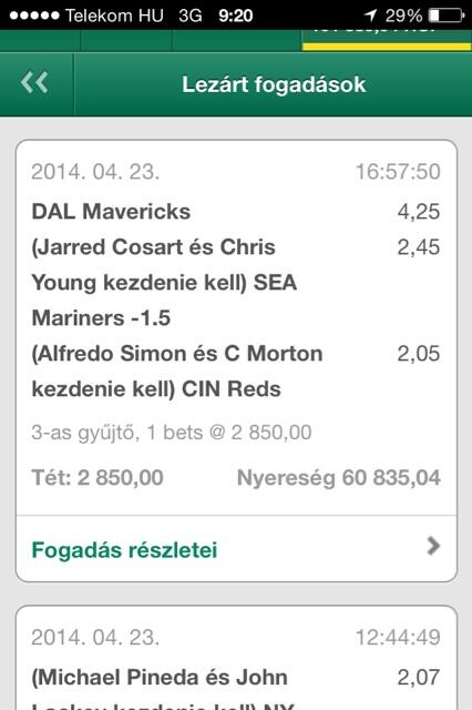 MLB (04.19): sportmajom.blog.hu/2014/04/19/mlb_04_913Nem tudom mikor fog véget érni a nyerő szériám, de ez most így nagyon király.