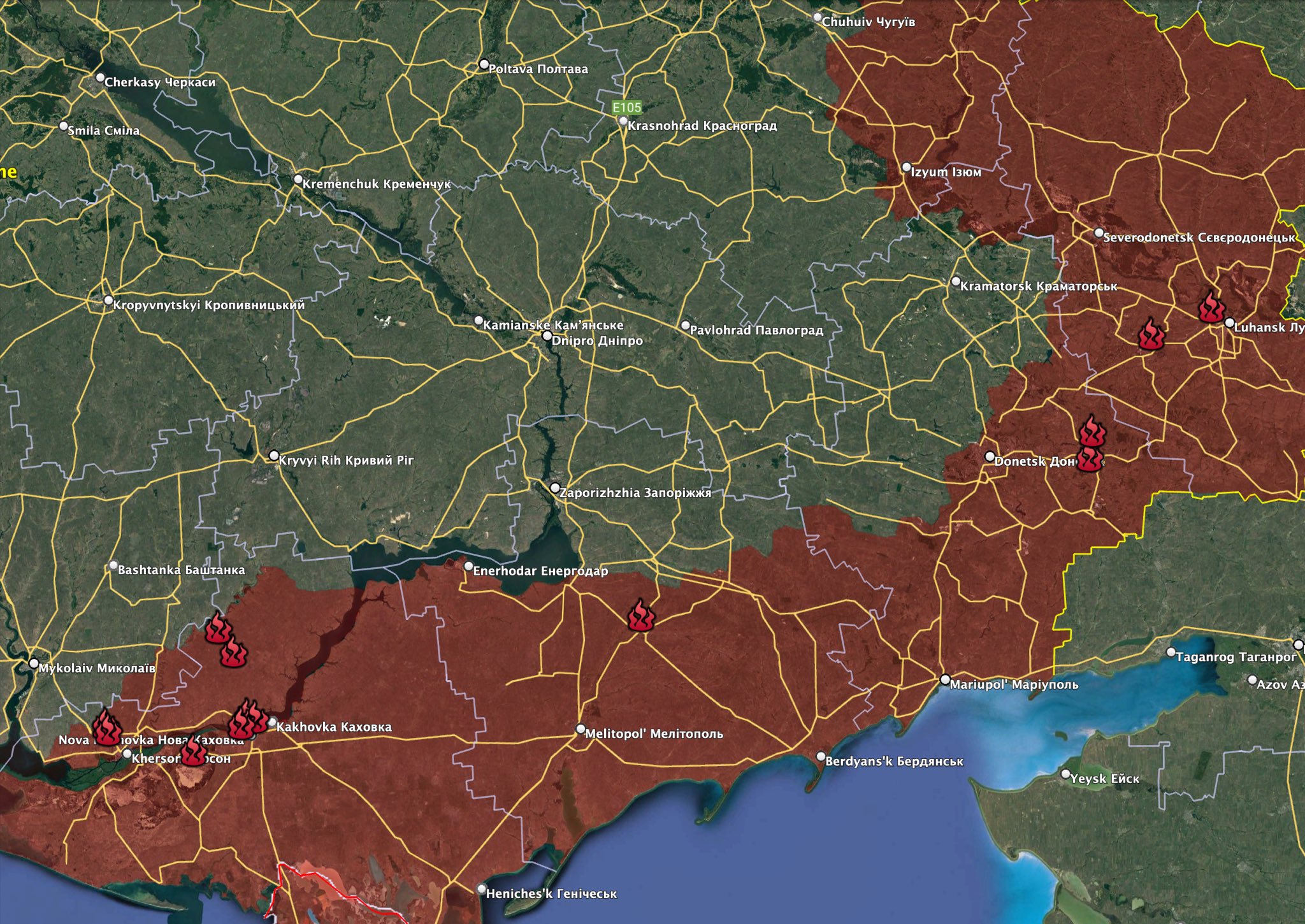 A déli fronton az ukránok szintén sorban iktatják ki az orosz raktárakat. A helyzet egy kicsit más jellegű ezen a területen mint Donbaszban. A szállítási útvonalak itt hosszabbak és nem is érik el őket teljes mélységükben, viszont a vasúti hálózat nem olyan sűrű, lényegében 2-3 vonalra korlátozódik. A forgalom a Herszon - Melitopol - Krím háromszögben zajlik, illetve Melitopolba Oroszország irányából is érkezhetnek szerelvények és ennyi. A herszoni raktárak egy része már megsemmisült, de támadás érte Melitopolt és tőle keletre fekvő vasúti hidat is.
