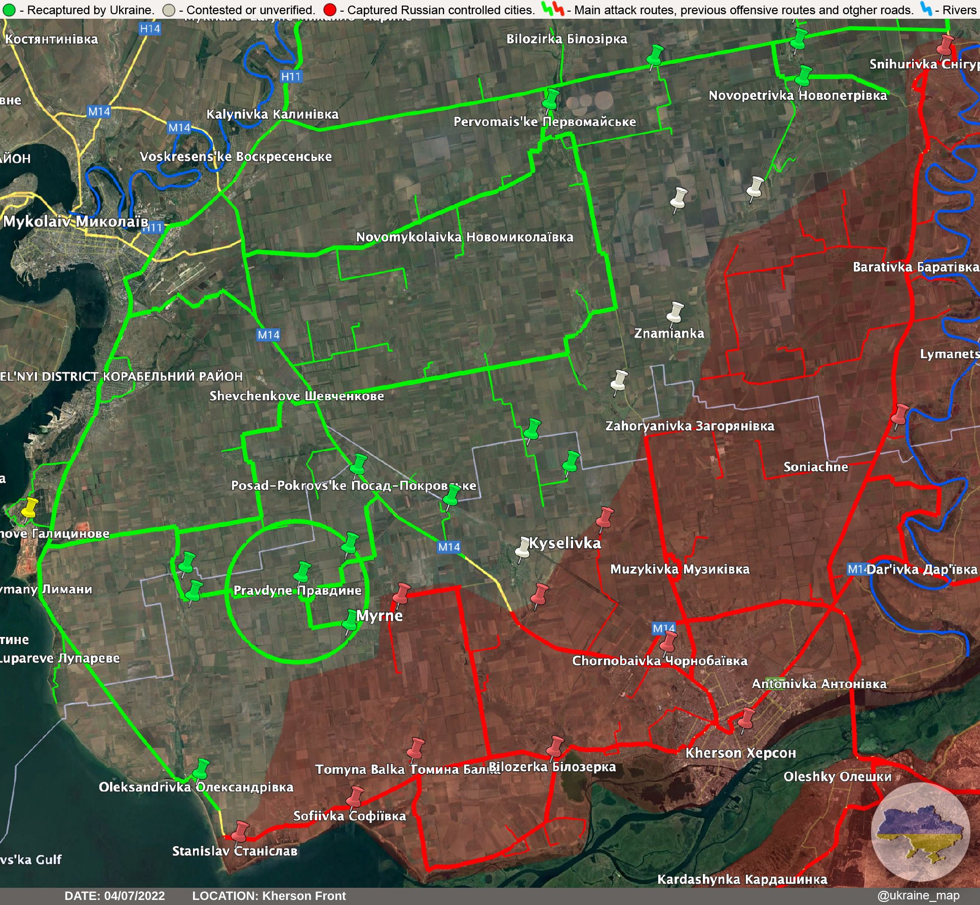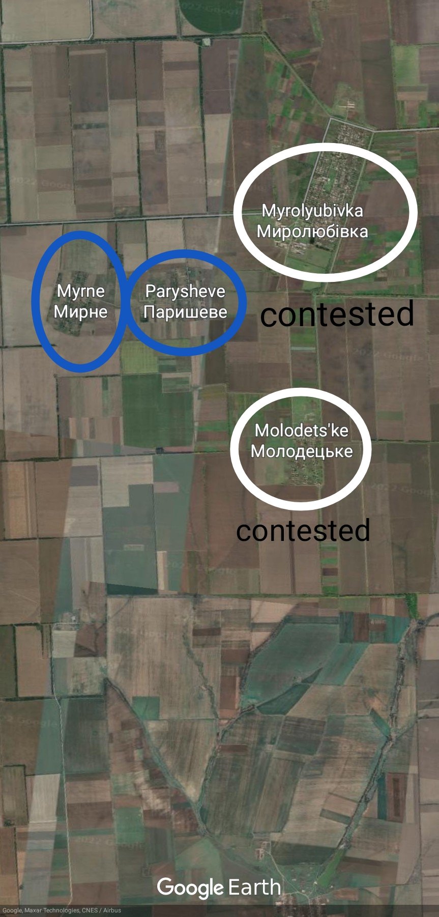 Kyselivka is currently contested as heavy battles continue around the area and Ukrainian Forces are attempting to retake Stanislav