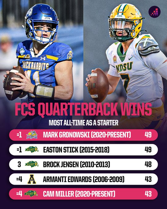 Mi történt: A kétszeres bajnok és címvédő Jackrabbits gyorsan a gázra lépett és a találkozó első 38 pontját kizárólag a hazaiak szerezték. Az elmúlt 8 szezonból hetedszerre sikerült bejutni az FCS elődöntőjébe. Mark Gronowski 5 TD-ben volt benne (3 passzolt és 2 futott) és beérte az FCS örök ranglistán Easton Sticket, mint a legtöbb győzelmet jegyző kezdő QB(49 győzelem). Pont az egykori Bison QB alma matere ellen döntheti meg ezt a rekordot jövő héten,