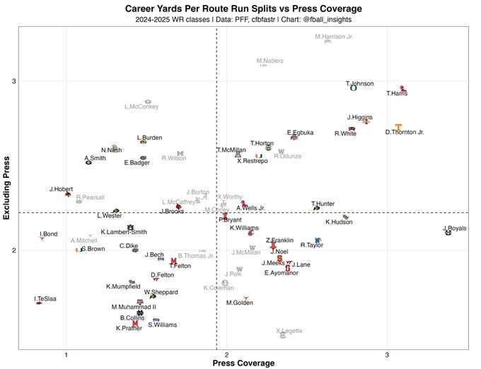 Ha már Fannin Jr azért zuhant 3. körbe, mert 'olyan TE aki nem elit atléta soha nem lett sztár', megjegyzem, Loveland és Warren nem felmérőzött. A top atléta 9+ RAS athletic score-nál kezdődik elvileg, ezt valszeg Warren bőven megugraná, Loveland meg nem. Mason Taylor 8.85, Fannin 7.76. Kicsit utána néztem és 3 TE-t találtam aki egyértelműen sztár kategória lett és 9 alatt volt felmérőkön: Mark Andrews, Tony Gonzalez, Shannon Sharpe. De például Isaiah Likely, aki ugyan nem sztár, de azért jelenleg az egyik legjobb TE, 5-ös RAS-t produkált.