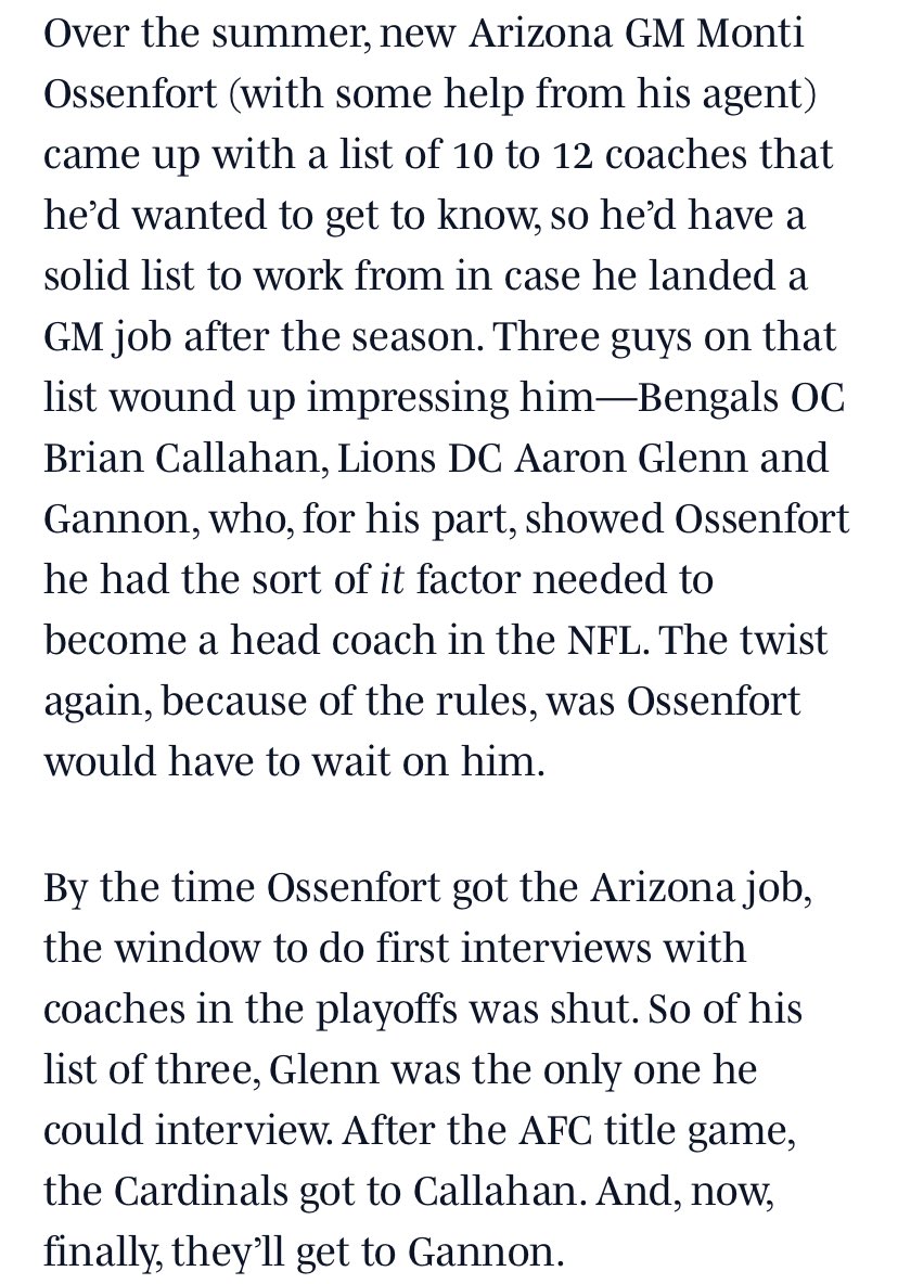 The #AZCardinals are expected to interview #Eagles DC Jonathan Gannon following the Super Bowl, and the impressive young coach has emerged as a key candidate for Arizona’s head coach search, sources say. This will happen on Monday.
