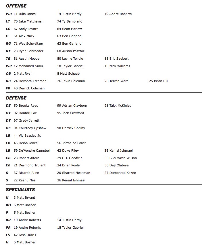 The initial makeup of the practice squad seemed a bit odd. Still does, and I’m expecting at least one more change in the next couple of weeks, but it makes a lot more sense now that we have the interior lineman, the QB, and an extra DB instead of the extra WR.For anyone new to all this, the big picture is that you want your defense to practice against a mockup of your next opponent’s offense. But you don’t want guys like Ryan, Julio, Mack, Schweitzer, Sanu etc to play those roles because they need their own practice against a mockup of the next opponent’s defense. So you have assorted backups and the guys on the practice squad play the roles of the opponent. They’re called the scout team. For the practice squad guys, that’s their true function for the team. It would be nice just to pick whatever 10 players you most want to develop, but you also need to pick the right combination of positions to round out those units for practice.