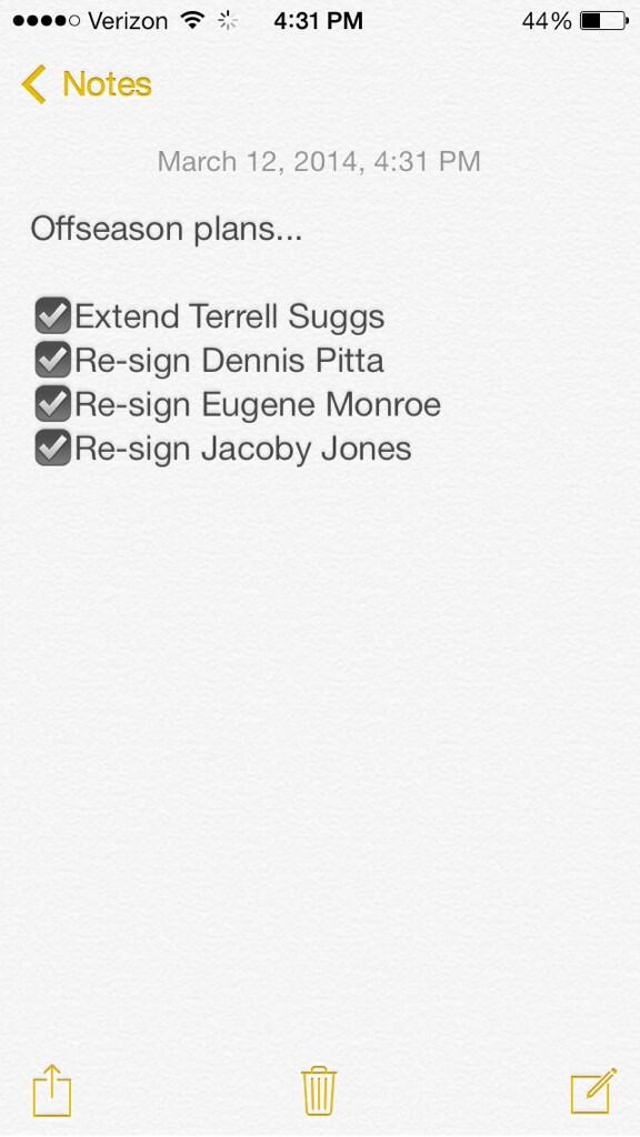 Úgy vagyok vele, hogy nem idén kell csúcsformában lenni. Broncos úthengerrel nagy valószínűség szerint AFC-s csapat még 1-2 évig nem fog tudni mit kezdeni. Építsük fel a csapatot addigra, és a Flacco-érában jussunk be még egy SB-ba 😊Flacco5Ez itt off, de abban a Denverben 1 év van szerintem, a következő, és olyan játékosokra vertek el hatalmas pénzeket akik az elmúlt években folyamatosan kidőltek az idény valamely pontján. Se Warere se Talibra nem jellemző, hogy egészséges tudna maradni. Plusz 2015-ben Thomas 2x valamint Welker és Miller is FA lesz. Most nagyon pofás igazolásnak tűnnek, de csúnya nagy égés is lehet ebből és bármi ami nem SB W égésnek számít.