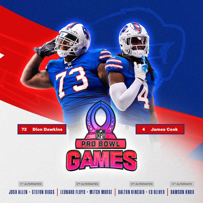 James Cook és Dion Dawkins biztosan Pro Bowlerek, még 7-en csatlakozhatnak hozzájuk.SB megyünk, úgyse megy senki erre rendezvényre.👍