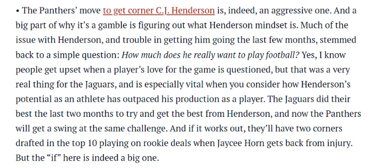 Albert Breer a Hendo cseréről Panthers szemszögből nézve. több mint 4 éve