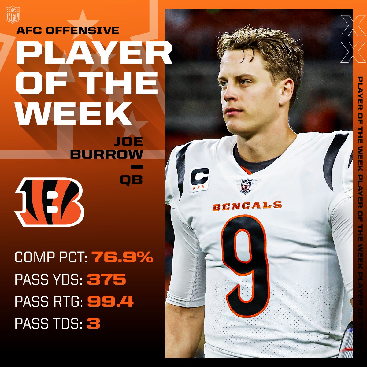Burrow lett a hét támadója az AFC-ben!Mondjuk ezt nem annyira értem. Max player of the 1. half.