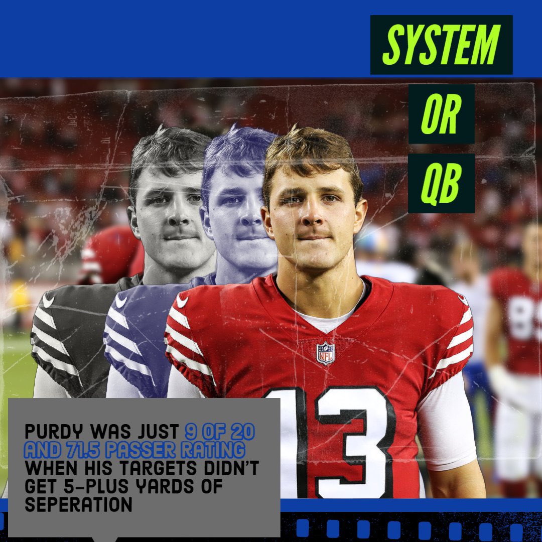 nyilván vannak kivételek mint a philly DE Frisco esetén ez egy SB győztes alap lehetne. még nem tudjuk, hogy megnyerik sőt azt sem, hogy bejutnak. de érdekes az a Purdy stat is, hogy ha nem szakadnak el az emberei akkor hogyan teljesít. és akkor tegyél mellé egy Daniel Jonest (és akkor nem a top 5 irányítóról beszélek), akinek az elkapói akkor sem tudnának elszakadni a CBktől, ha azok vakok lennének.ezen felnevettem 😀