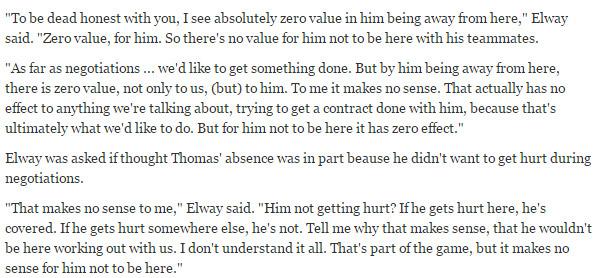 1) A DT-vel való tárgyalások nem mehetnek teljesen zökkenőmentesen, Elway ugyanis kifakadt a holdoutja miatt: