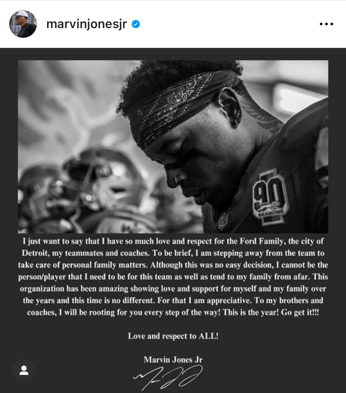 𝗕𝗥𝗘𝗔𝗞𝗜𝗡𝗚: #Lions WR Marvin Jones Jr says he’s stepping away from the team to take care of personal family matters.