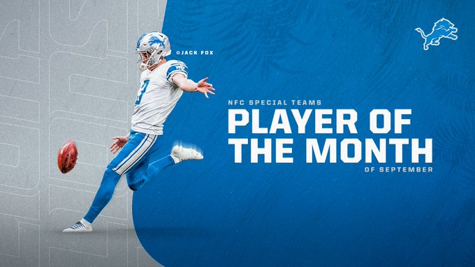 Elnézést a pozitív hozzáállásért, de punter poszton soha nem volt ilyen jó a Lions, mint szeptemberben!P @MrJackFox is the 1st punter in @Lions history to win an NFC Special Teams Player of the Month award.