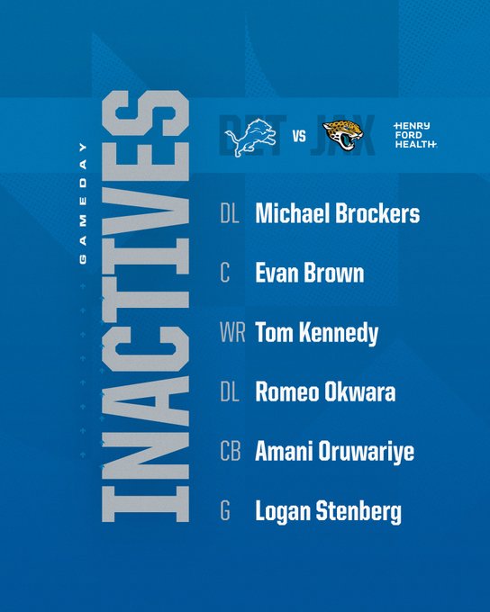 Okwara végül inaktív. Viszont Jamisonnak jól jöhet, hogy a 3 épkézláb DB-nkből az egyik nem játszik.Jameson Williams aktivalvaAz első olyan meccs mostanában ami elé úgy fogok leülni, hogy nagyon várom.