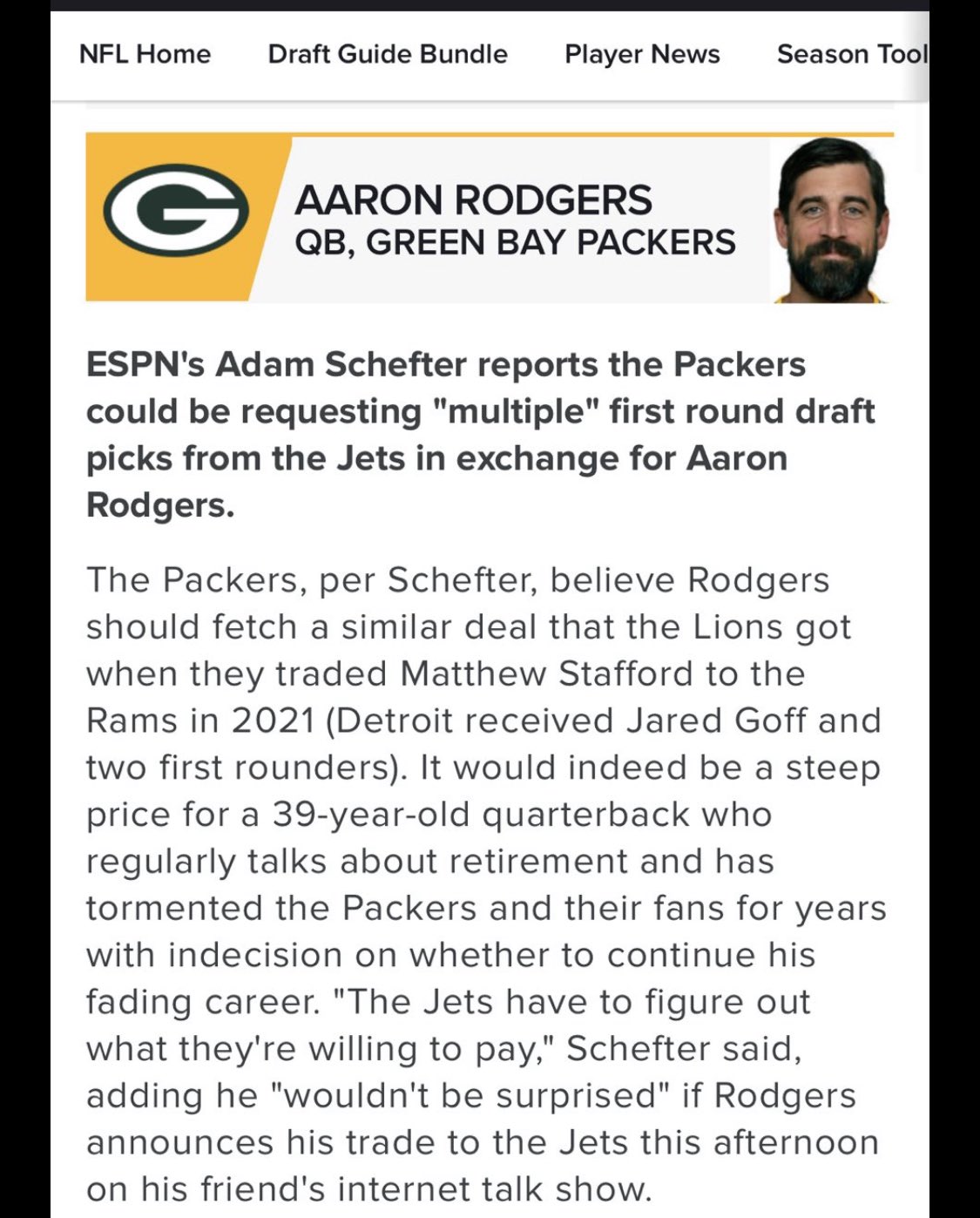 És ez így nemcsak a mostanit, de a 2020-as draft óta mindent is beárnyékol a csapattal kapcsolatban, miszerint a FO még annyál is retardáltabb, amit itt gondoltunk róla, és Aaron türelme és hozzáállása sem volt a helyén kezelve.