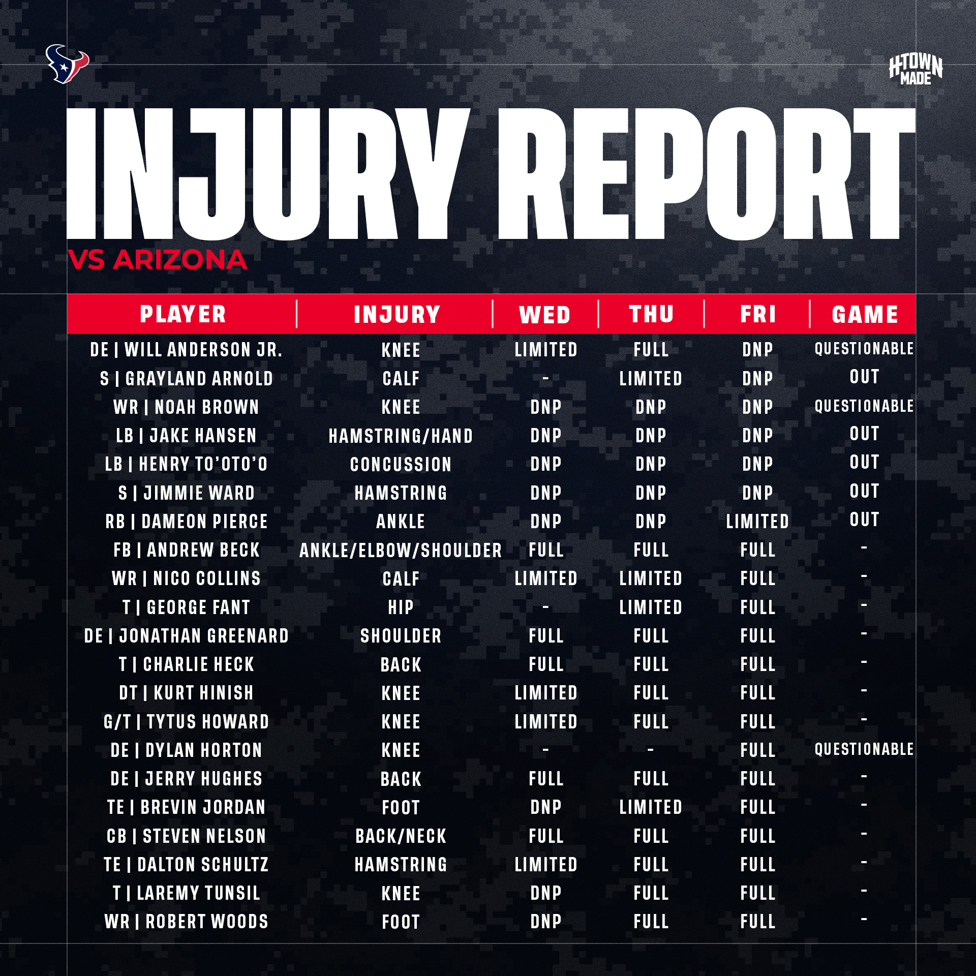 — Houston Texans (@HoustonTexans) November 15, 2023