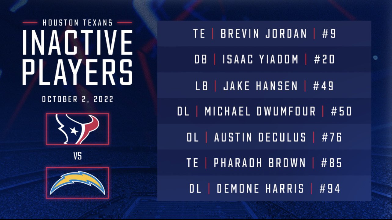 — Houston Texans (@HoustonTexans) October 2, 2022