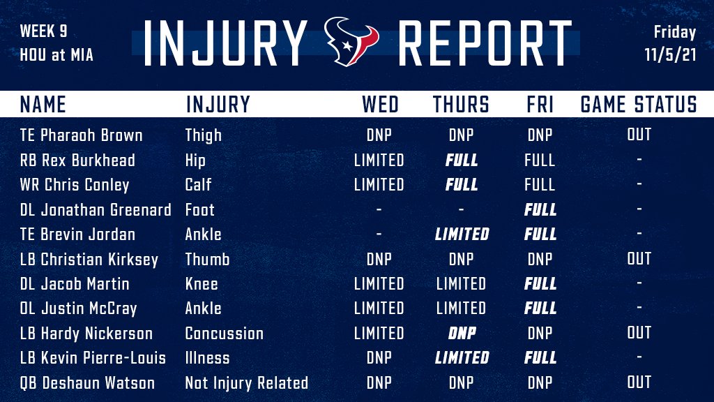 Texans have refs at practice to help team with penalty issue, and also tight end Pharaoh Brown back from hamstring strain @SportsTalk790 pic.twitter.com/J4Y1HcrDxy