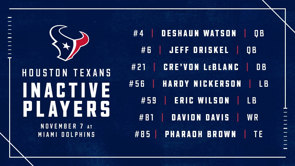 Tyrod's back: Texans announce Taylor (hamstring) will start at QB vs. Dolphins after six-game absencehttps://t.co/wVHoCZQrzz pic.twitter.com/K0mgQBByP6