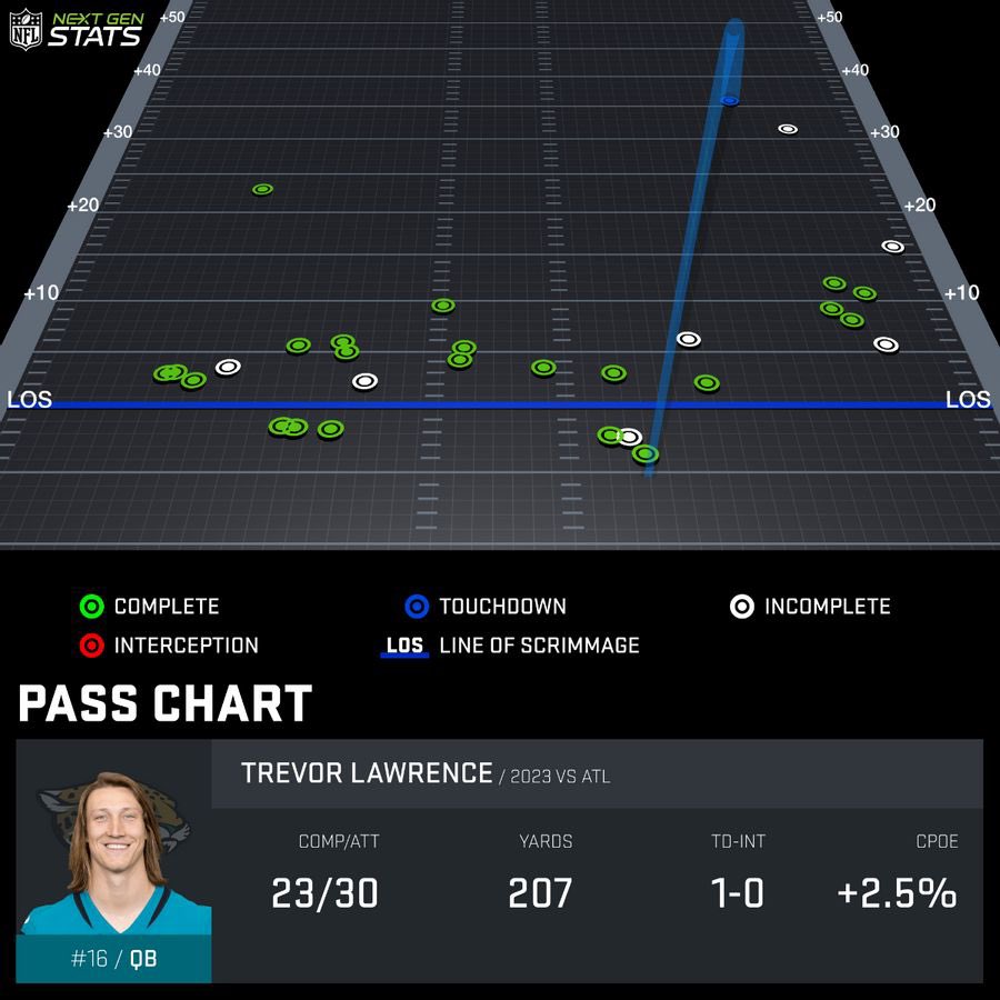 Per PFF, Trevor Lawrence when kept clean and when pressured yesterday: