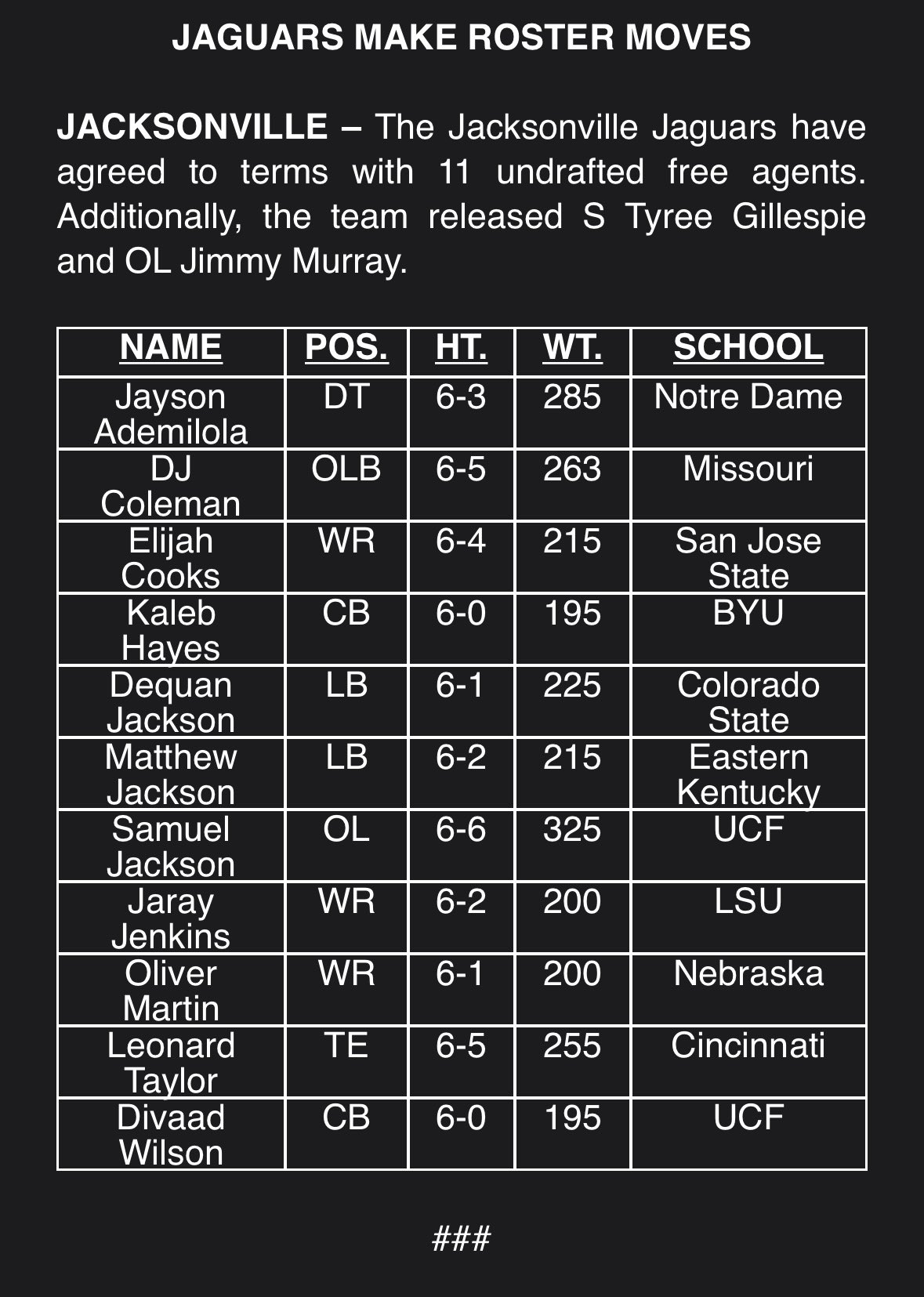 Kb csak a vak nem látja, mi a terv. 17 milliót spórolunk majd vele. A baj csak az, hogy erre tavaly a szerződéshosszabbítás előtt is gondolni kellett volna és akkor most még itt lenne Jawaan RT-ben, Cam lenne Kansasben pl az összes elérhető TE bent lett volna 1/27-en, ahelyett, hogy OT-t viszünk. Majdnem olyan jól sikerült üzlet ez, mint mikor Bortles kapott egy 3 éves szerződést, hogy 1 évre rá ki kelljen vágni... Foles miatt. Mondtam már, hogy ez nem egy okos franchise, tökmindegy ki a GM?Mitch - thebottomlineview, szerintem tudod kiről beszélek - mondta azt a Jaguars draftra, hogy olyan, mintha a bajnok csapat draftolt volna egy full kész keretbe, a cserepadra 1-2-3 éves developmental prospecteket. És tényleg! Szerintem tök jól elkapta, hogy mivel lehet ezt a classt egy mondatban jellemezni.