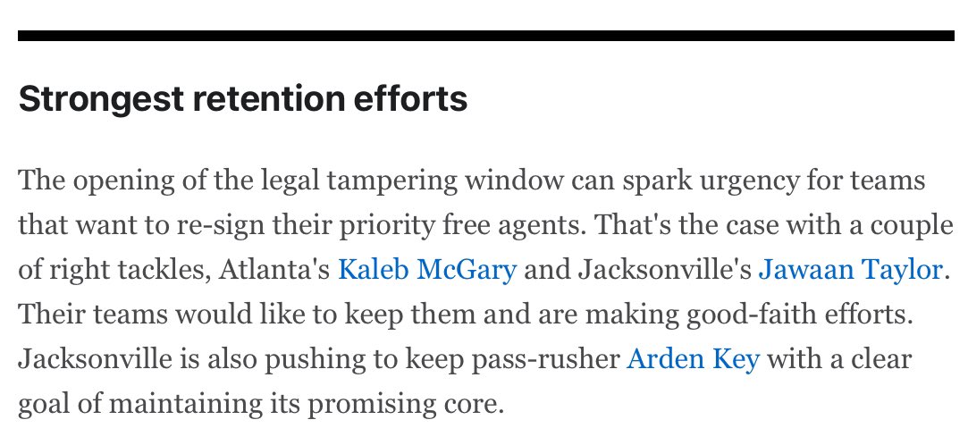 The #Titans have agreed to terms with DL Arden Key on a three-year, $21 million deal with a max value of $24 million that includes $13 million fully guaranteed at signing, source says. After 4.5 sacks with the #Jaguars last season, Key cashes in.