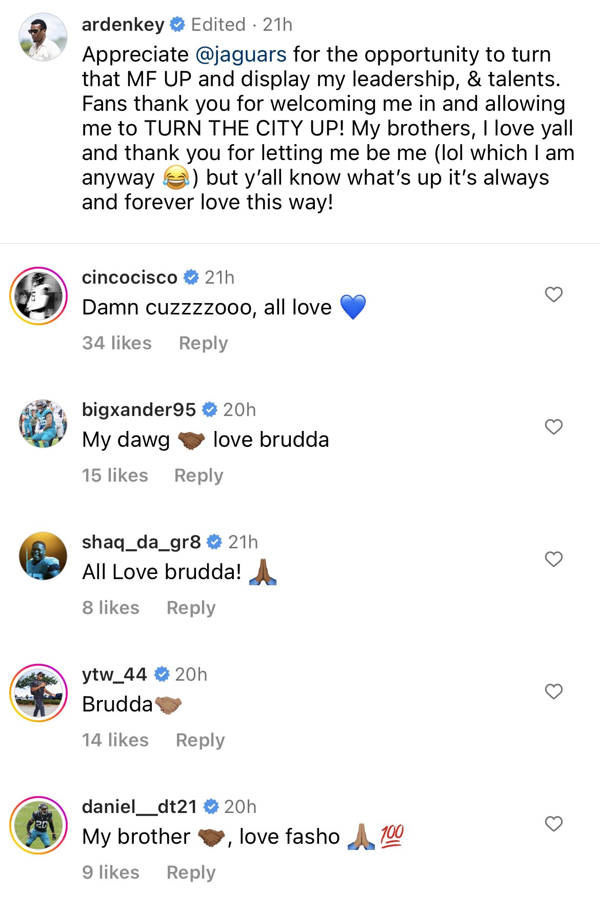 "I had a lot of good interest, lot of good offers, stuff like that. And eventually in my heart I was like, I want to be in Jacksonville, I want to win games with these guys and build something special."