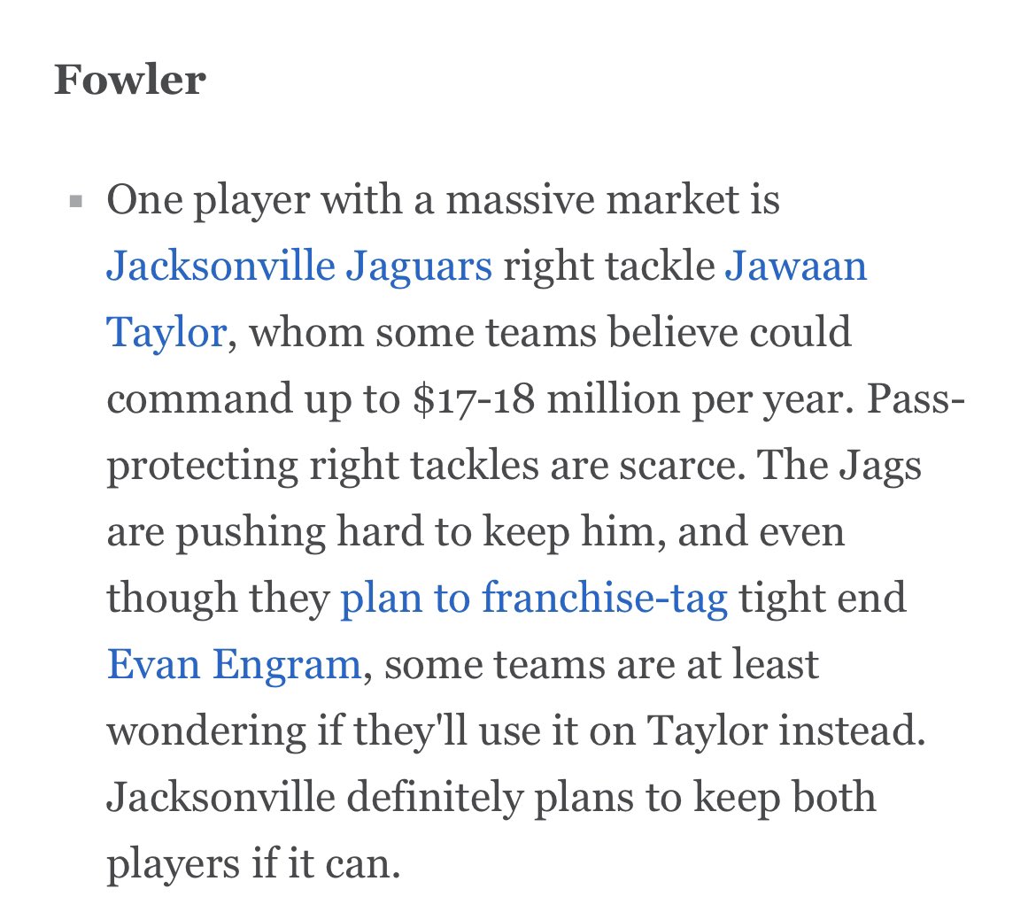 The #Jaguars have just over $13 million in effective cap space before the Engram tag, which will cost $11.345. Plus you have Calvin Ridley's cap hit and the rookie class.