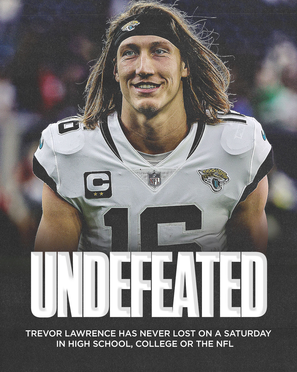 #TrevorLawrence and the #Jaguars led a 27-point comeback vs. the #Chargers tonight (31-30 W).