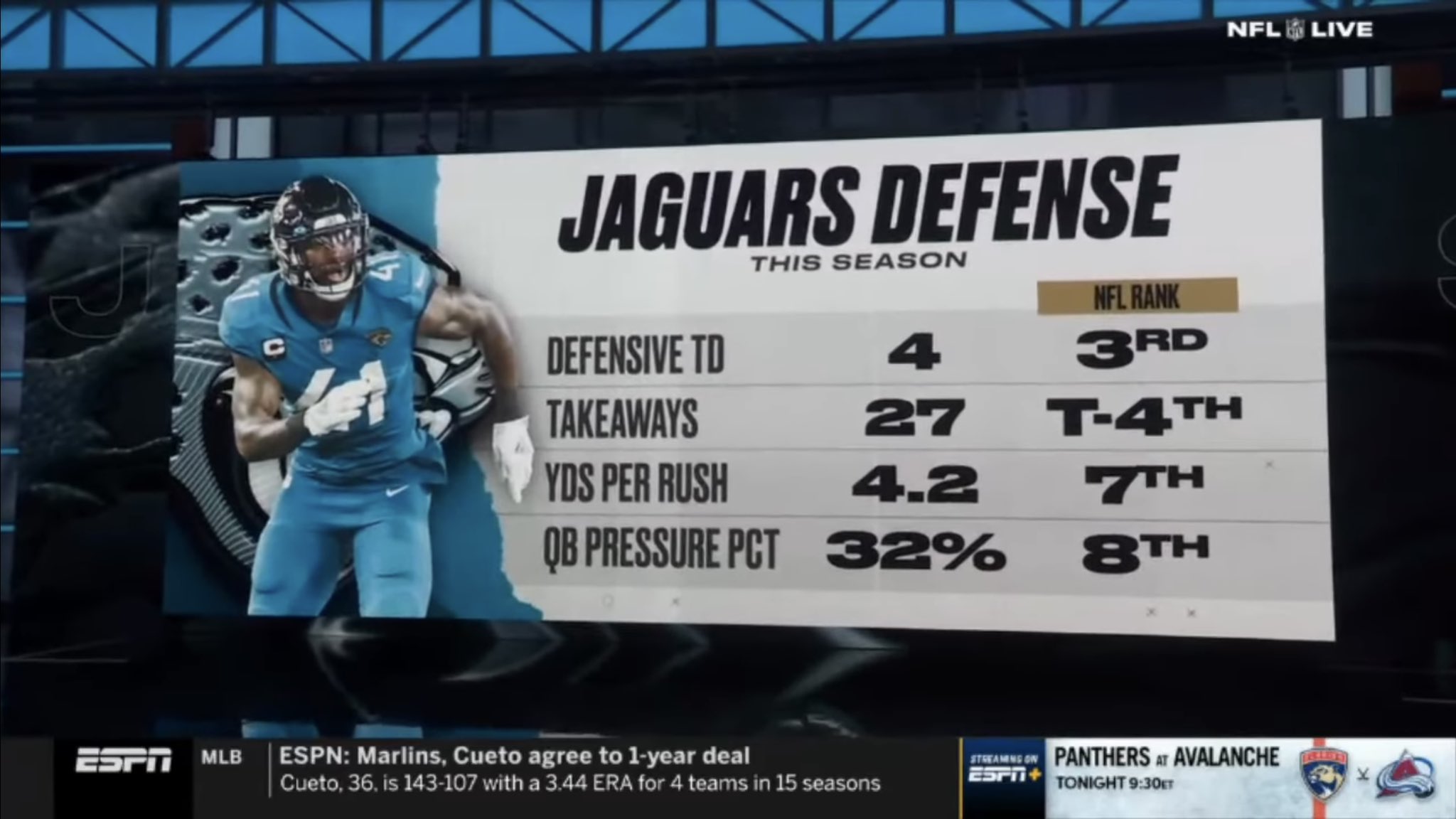In the last 5 weeks, the #Jaguars outside cornerbacks have allowed just 95 yards, 1 INT, and 1 TD