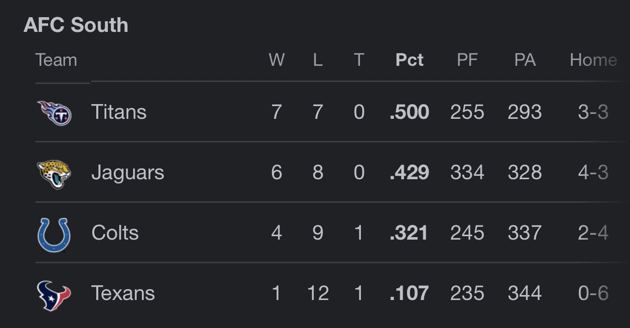 Thoughts coming out of the #Titans locker room: That’s a tired, beat up team with zero answers. Several were surprised to hear the Jaguars are only a game behind them and seemed nervous about it. Need a shake up but what can be done?
