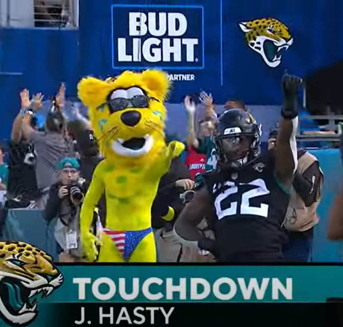 A Jaguars 1--0-al áll idén, amikor Jaxson DeVille egy szál fecskében parádézik a stadionban. A Dallas és a Titans ellen is megtehetné,, hátha ez a szerencsepatkónk. 😀