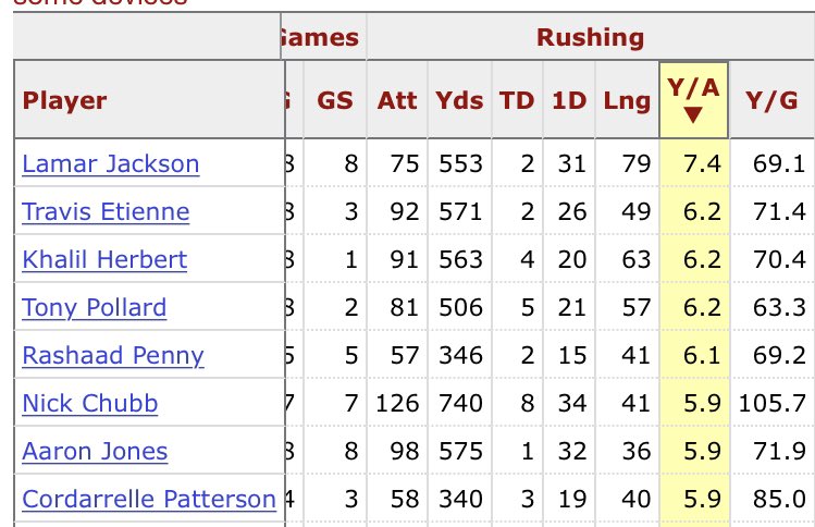 Etienne 6. futott yardokban és Lamar Jackson mögött ő szerzi a legtöbb yardot futásonként. Jelenleg ő a legjobb játékosunk támadásban.