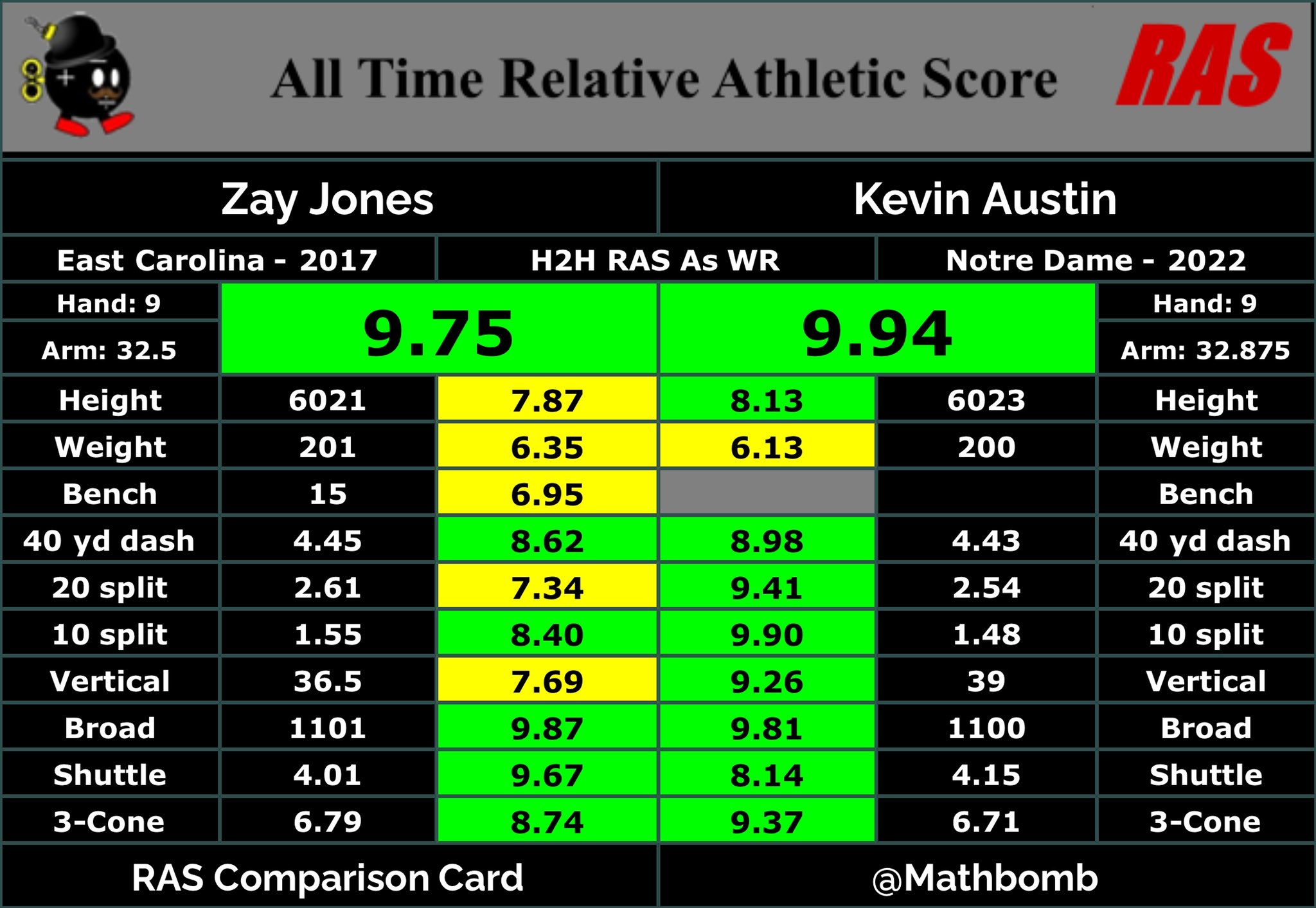 Kevin Austin is a WR prospect in the 2022 draft class. He scored a 9.94 RAS out of a possible 10.00. This ranked 18 out of 2786 WR from 1987 to 2022. https://t.co/yQ5IiryhM1 #RAS #UDFA https://t.co/6eMQkv5100 pic.twitter.com/elIAqzrXmL