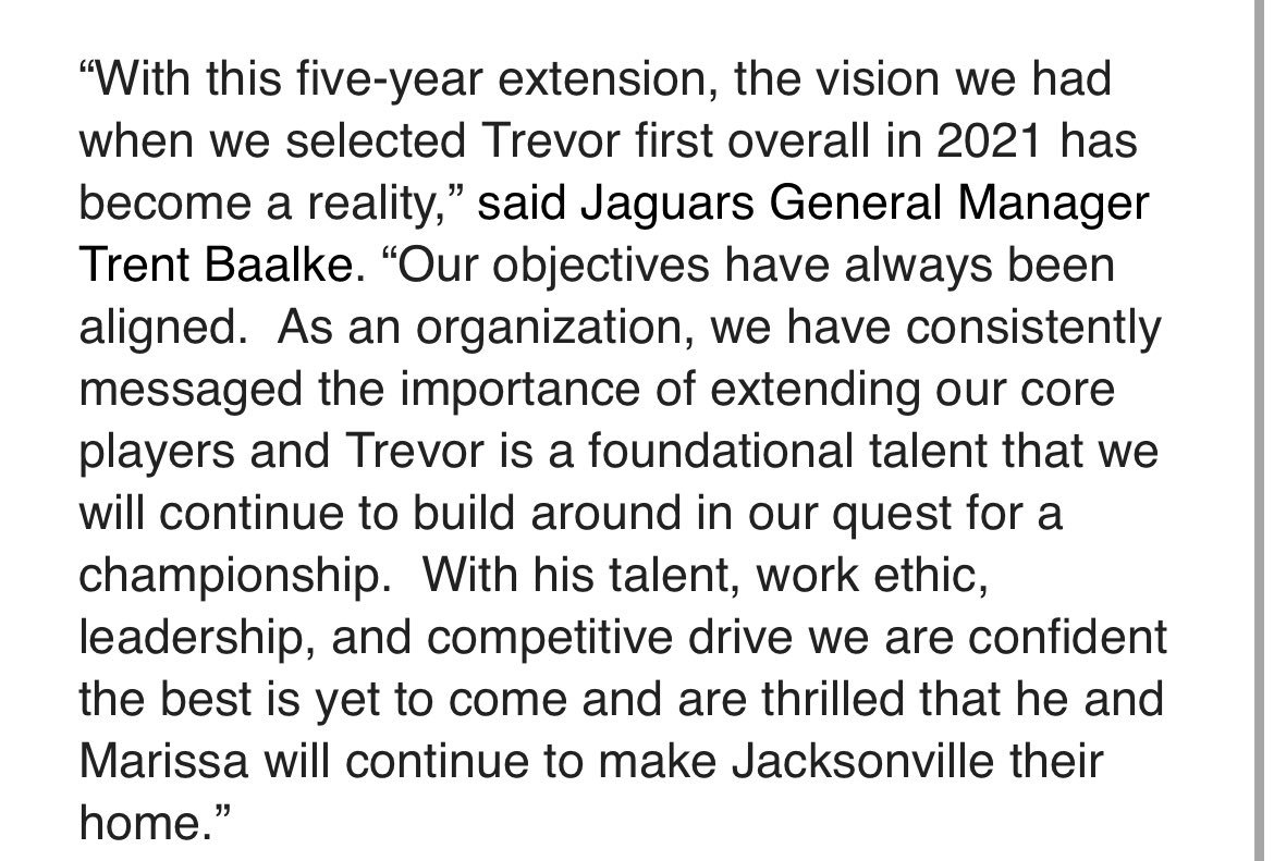 Team MGC is thrilled for Trevor, the Jags and the entire city of Jacksonville. Trevor is a proven champion who is not only a phenomenal football player, but an incredible leader, teammate, husband and citizen. #Duuuval pic.twitter.com/4IBkBv5U0H