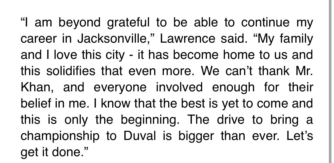 @Trevorlawrencee signs a 5 year extension worth $275M.