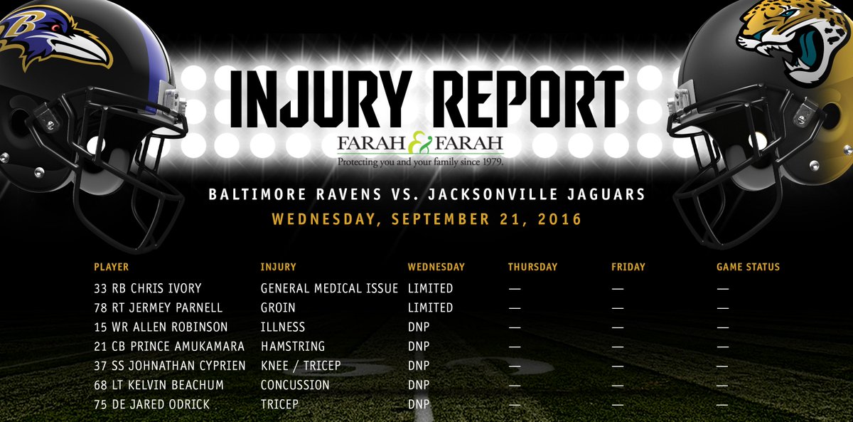 A-Rob, Ivory és Cyprien mind edzettek, és Greg Olson szerint úgy tűnik Ivory végre bemutatkozhat vasárnap a Jagsben. De hogy legyen valami rossz hír is, Lindernek bokazúzódása van, ezért ma nem edzett, ahogy Odrick, Amukamara és Koyack se. Mindeközben Clevellandben,