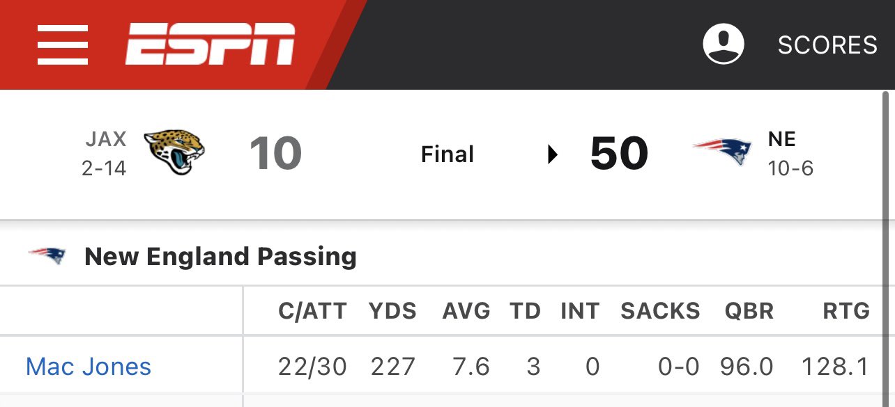 Trade: Patriots are finalizing a deal to send QB Mac Jones to the Jacksonville Jaguars, sources tell ESPN. The trade cannot be processed until the new league year begins Wednesday and he passes a physical. The two sides were discussing a 6th-round pick, per sources.