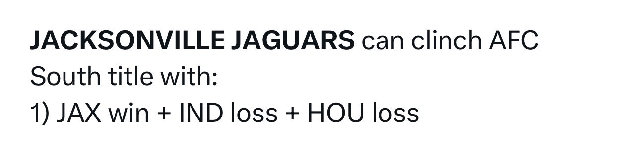 10-7 idén meglesz nagyon remélem, mert ez a minimum. Jövőre egy rendesen beröffentett Texans, Magicről Richardsonra váltó Colts is keményebb lesz és idén is van már 8 győzelmük, Titans most elérte a mélypontot, ettől ők is jobbak lesznek.