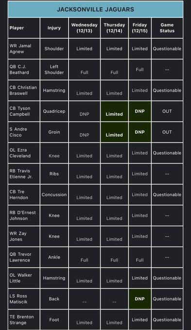 — Jacksonville Jaguars (@Jaguars) December 10, 2023
