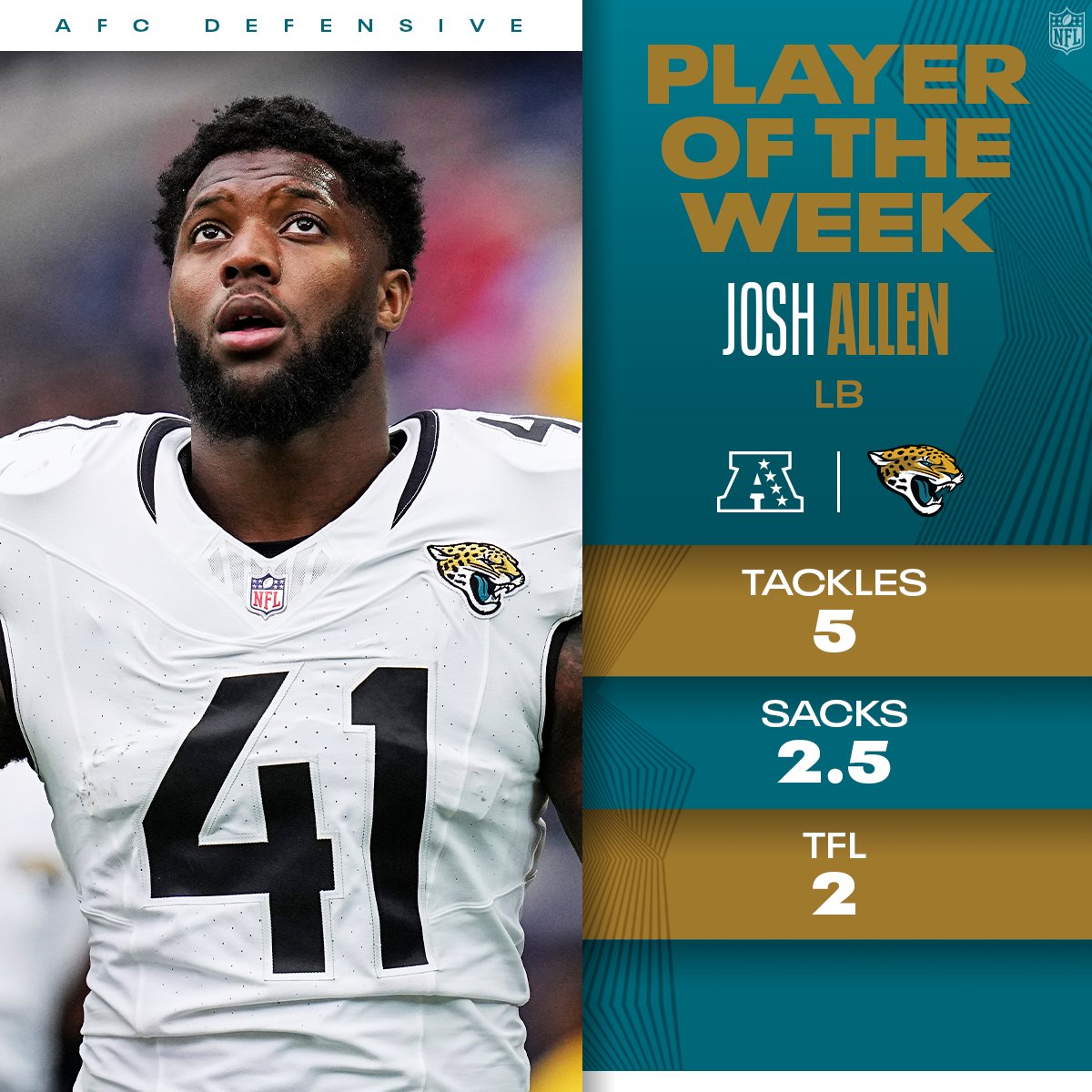 TLaw az AFC Player of the Week 🤟A hét AFC védője is egykori Jags Top 5 pick...