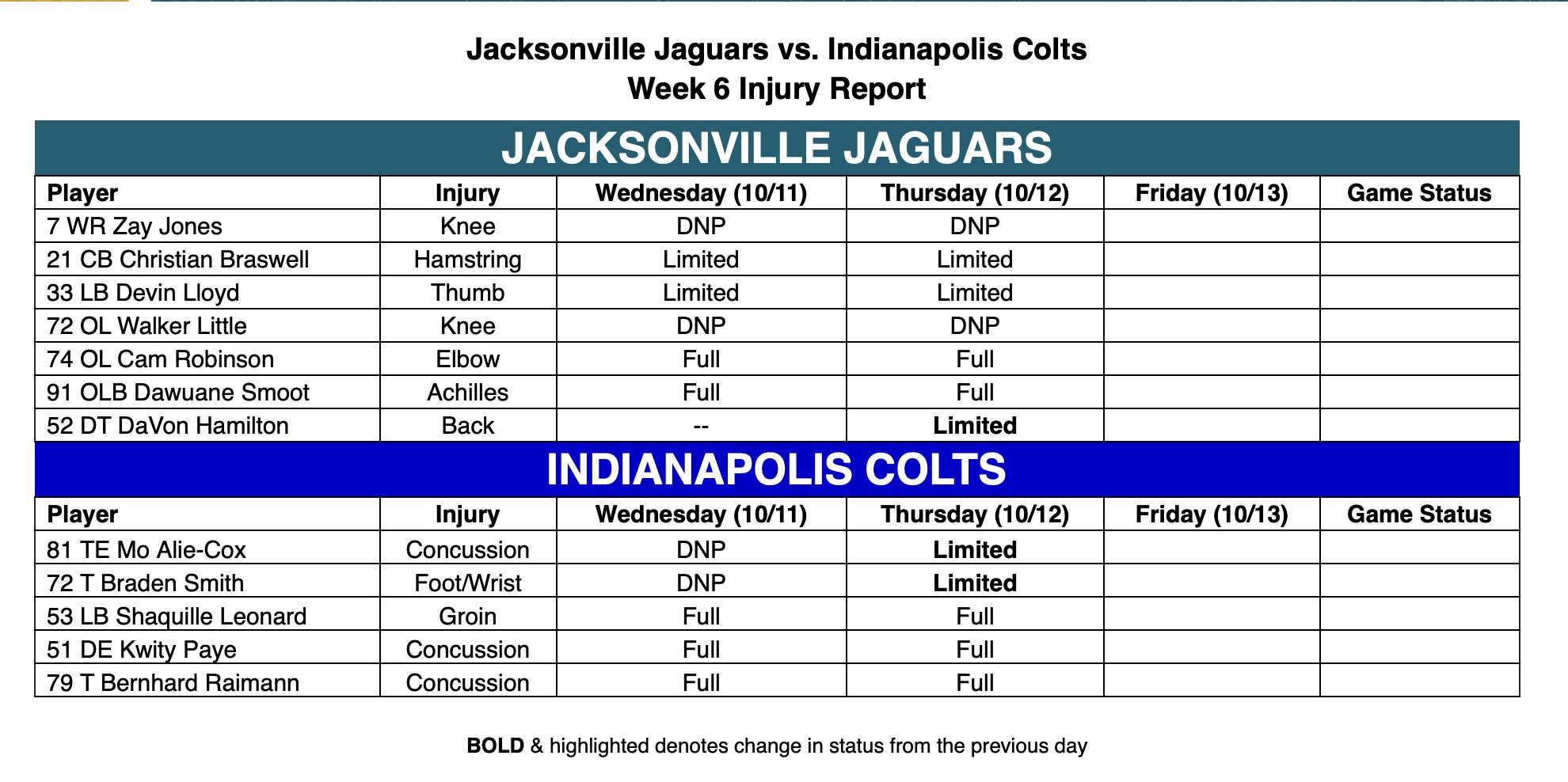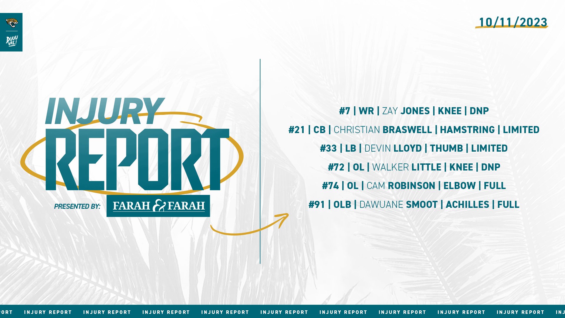 Walker Little és Zay Jones is "day-to-day" státuszban van, tehát bármikor visszatérhetnek. Ma nem edzenek. Little esetében ez baromi jó hír.
