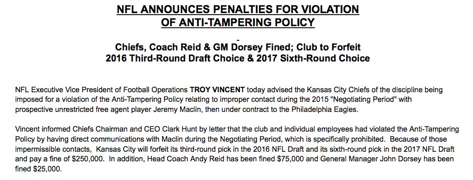Clark Hunt velemenye a buntirol:profootballtalk.nbcsports.com/2016/03/09/clark-hunt-tampering-penalty-inconsistent-with-past-discipline/