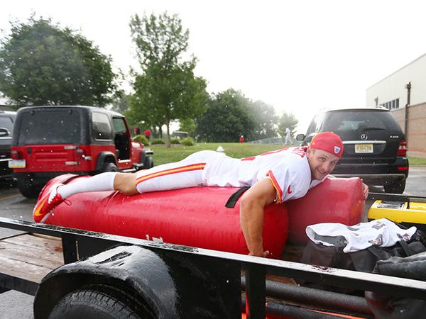 Joe Mays (LB) felesége nem akar edzőtáborba menni. Szó szerint akadályt állított a dolog útjába: