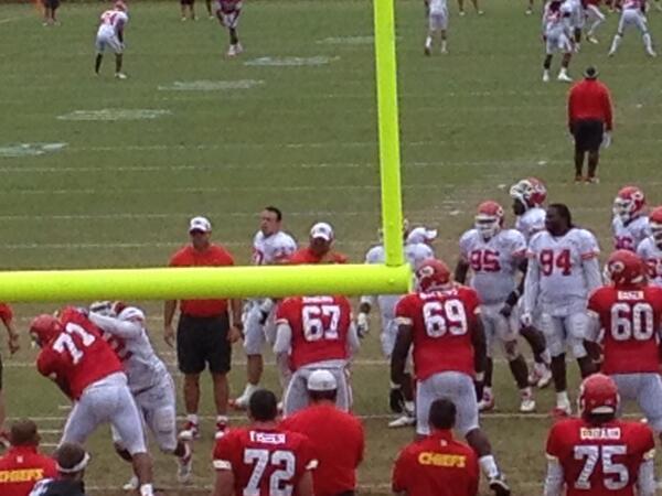 Husain Abdullah safety kihagyta az edzést ágyéksérülés miatt.Austen Lane OLB továbbra is parádézik. Nagyon nehéz tartani, egyik alkalommal gyakorlatilag elsöpörte Fishert.